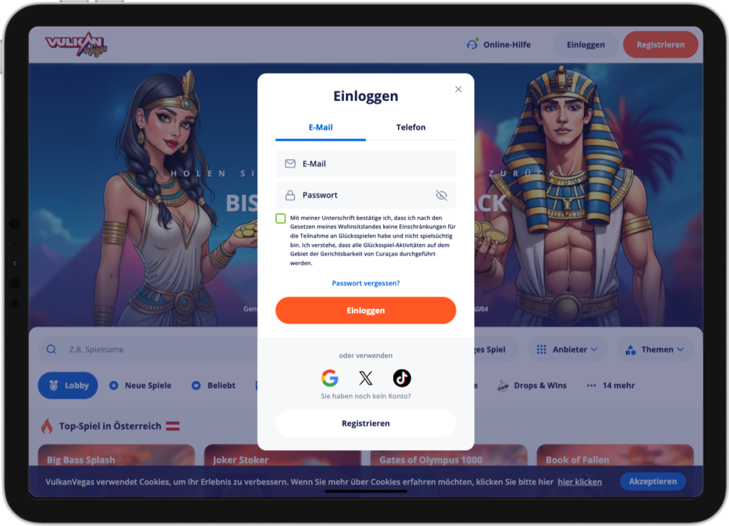 Vulkan Vegas Casino Anmeldung und Registrierung