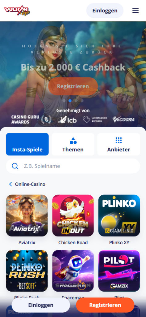 | Übersichtliches und responsives Design für Smartphones und Tablets | Android App muss über die Vulkan Vegas APK installiert werden |