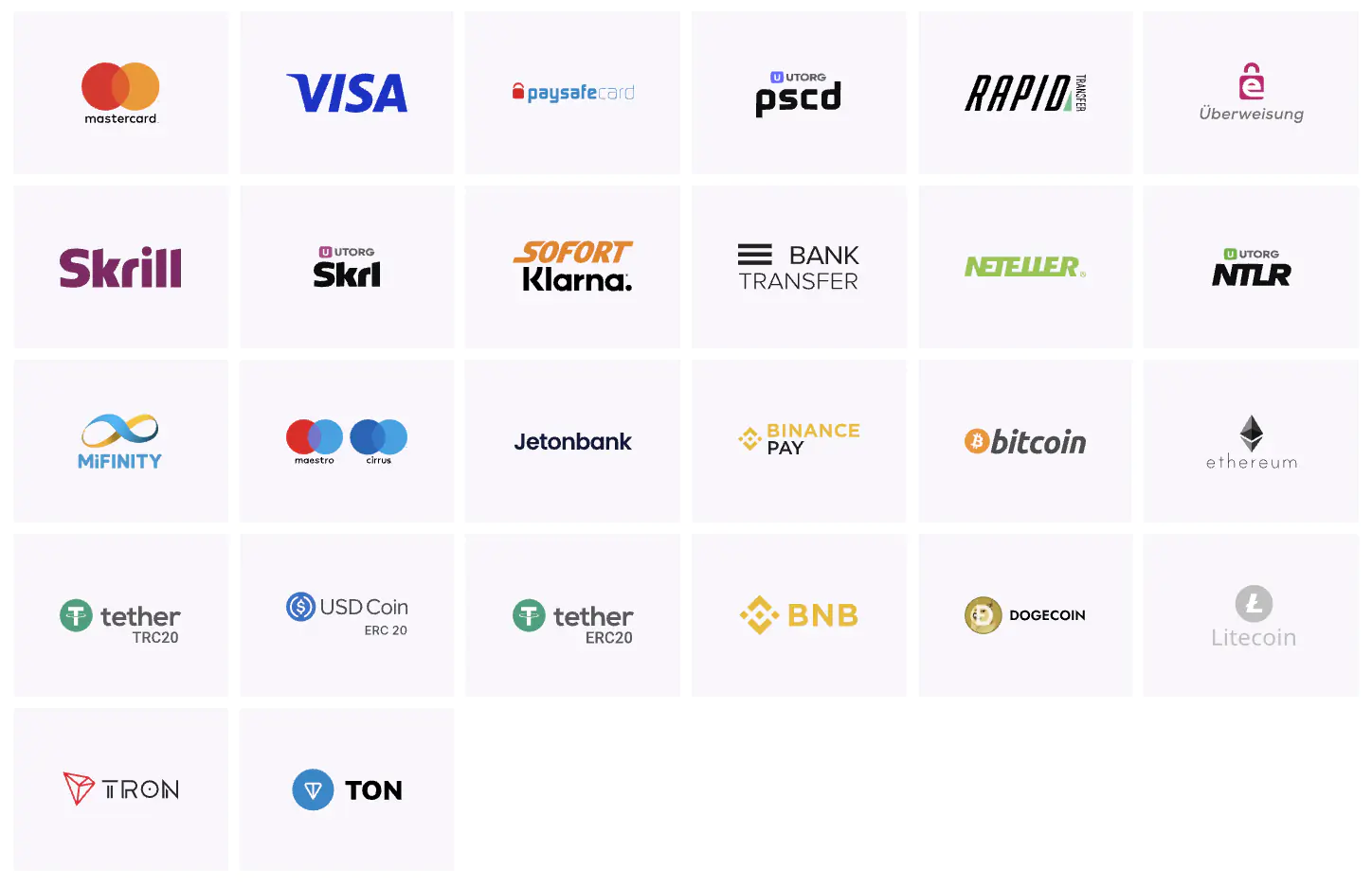 Verfügbare Einzahlungsmethoden: